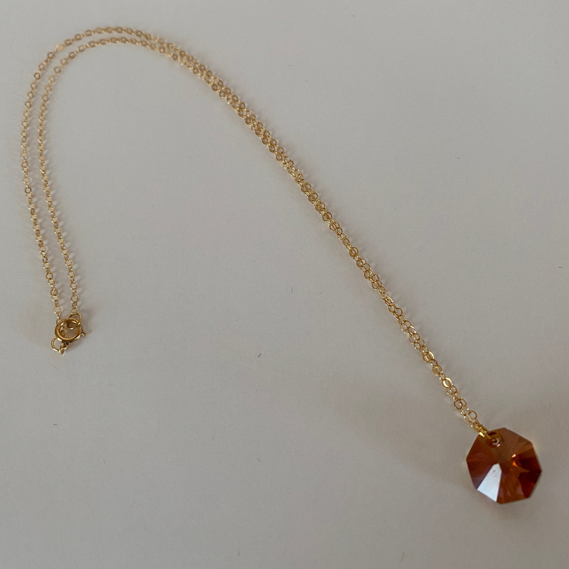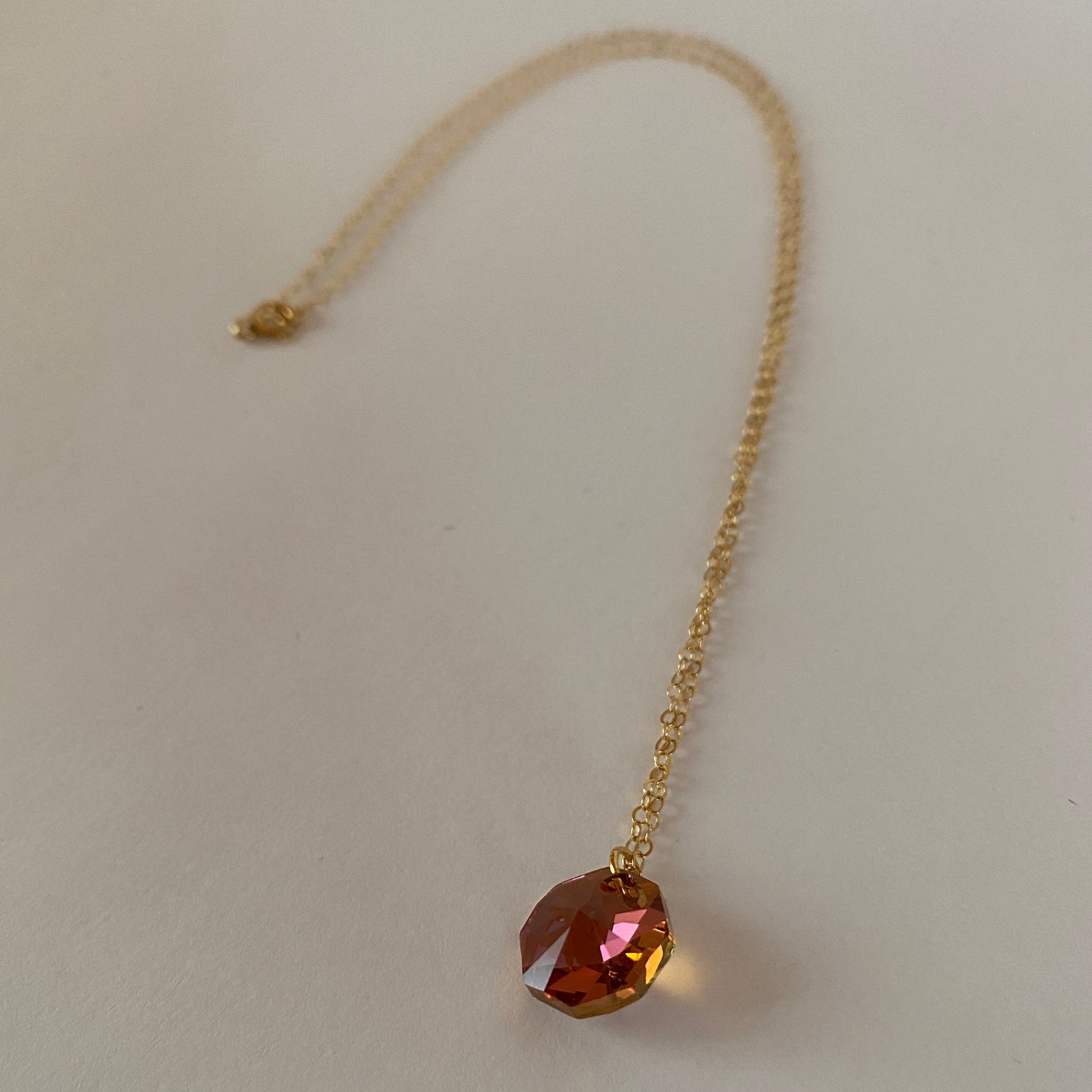 DN Dainty Chain Peach Swarovski Octagon Pendant