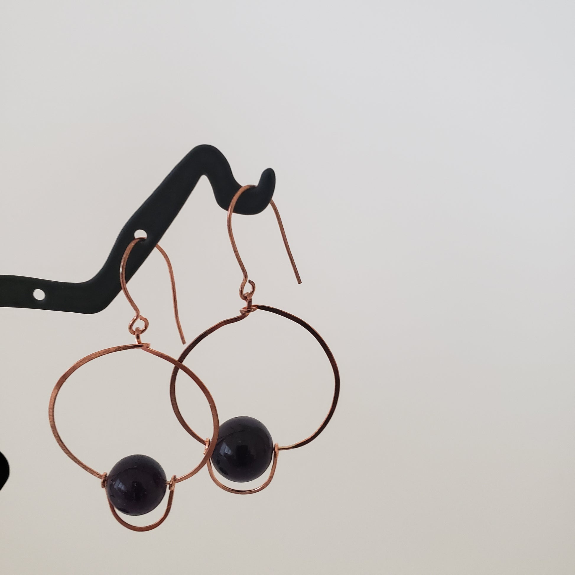 Earrings Black Onyx in Circles, Rose Gold